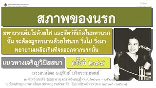 แสดงให้เห็นสภาพของนรกว่า มีลักษณะต่างๆ มหานรกเต็มไปด้วยไฟ และสัตว์ที่เกิดในมหานรกนั้น จะต้องถูกทรมานด้วยไฟนรก วิ่งไป วิ่งมา พยายามเหลือเกินที่จะออกจากนรกนั้น และในกาลบางครั้งประตูเปิด สัตว์นั้นออกไปได้จริงๆ แต่ว่ารอบมหานรกนั้น มีนรกเต็มไปด้วยคูถใหญ่ประกอบอยู่รอบด้าน คูถเป็นอุจจาระ มีโอกาสที่จะอยู่ในนั้นบ้างไหม แม้ในโลกนี้ มีใครเคยตกลงไปบ้างไหม ท่านที่ได้สนทนากับผู้ศึกษาธรรมคงจะเคยได้ฟังว่า มีคนตกลงไปจริงๆ ด้วยวิบากที่จะได้รับผลอย่างนั้น แต่ถ้าเป็นผลของกรรมที่จะได้รับความทรมานอยู่ที่นั่นตลอดเวลา เป็นระยะเวลาที่นาน และในที่นั้นยังมีสัตว์ปากดังเข็มคอยเฉือนผิว เนื้อ หนัง เอ็น กระดูก และกินเยื่อในกระดูก