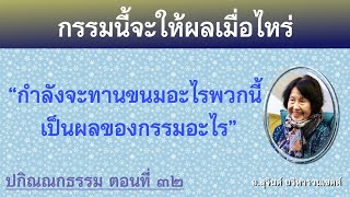 ท่านอาจารย์ ถ้าไม่พิจารณาในเหตุผล อย่างการได้ยินได้ขณะนี้ เป็นวิบาก เป็นผลของกรรมอะไร ตอบได้หรือ ไม่มีทางจะตอบได้เลย เพราะฉะนั้นขณะใดที่กระทำกรรม คนนั้นก็ไม่รู้ว่ากรรมนี้จะให้ผลเมื่อไหร่ เป็นสภาพปกปิดจริงๆ จะให้ผลมากหรือให้ผลน้อยอย่างไรก็ไม่รู้ และเวลาที่ผลของกรรมเกิด ก็ไม่รู้ว่าผลนี้มาจากกรรมอะไร ชาติไหน อย่างเรากำลังจะทานขนมอะไรพวกนี้ เป็นผลของกรรมอะไร ชาติไหน แต่ว่า มีกรรมที่ทำให้ชิวหาปสาทเกิด มีรูปกระทบ ทำให้วิบากจิตลิ้มรส ขณะที่ลิ้มรสนั้นคือผลของกรรมแล้ว เพราะฉะนั้นวันหนึ่งๆ เรามีผลของกรรมทางตา ทางหู ทางจมูก ทางลิ้น ทางกาย โดยลืมว่า นี่เป็นผลของกรรม แต่จริงๆ แล้วทุกขณะเหล่านี้ เป็นผลของกรรม มีกรรมซึ่งได้ทำแล้วเป็นเหตุ และหลังจากลิ้มรสแล้ว เห็นแล้ว ก็ยังมีกิเลสซึ่งจะเป็นเหตุให้เกิดกรรมต่อไปอีก แล้วแต่ว่าจะมากน้อยที่จะทำให้เราเกิดกุศลกรรมหรืออกุศลกรรม ก็ไม่สิ้นสุดถ้าตราบใดที่มีกิเลส ก็ต้องมีกรรม และก็ต้องมีวิบาก แต่ว่าเป็นสิ่งที่ปกปิดเพราะว่าเราไม่สามารถจะติดตามไปรู้ได้ว่า กรรมนี้จะให้ผลเมื่อไหร่ หรือว่า ผลนี้เป็นผลของกรรมเมื่อไหร่