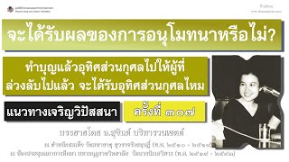 สุ. แล้วแต่การอนุโมทนาของบุคคลนั้น แม้แต่ยังมีชีวิตอยู่ในขณะนี้ ท่านผู้ใดเจริญบุญกุศล ให้ทาน รักษาศีล ฟังธรรม ปฏิบัติธรรม บุคคลอื่นรู้ ก็แล้วแต่บุคคลนั้นจะอนุโมทนาหรือไม่อนุโมทนา แต่การที่ท่านอุทิศให้เป็นส่วนกุศลของท่านเอง จิตของท่านเองเป็นกุศลที่จะอุทิศให้ แต่บุคคลอื่นจะอนุโมทนาหรือไม่อนุโมทนา และจะได้รับผลของการอนุโมทนาหรือไม่ เป็นสิ่งที่ท่านไม่ทราบ แต่ควรจะเจริญกุศลกรรม คือ อุทิศส่วนกุศลให้