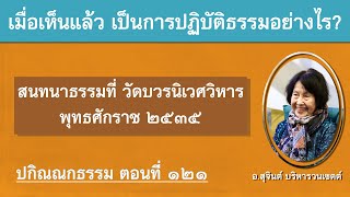 ผู้ฟัง เมื่อเห็นแล้ว เป็นการปฏิบัติธรรมอย่างไร เห็นแล้ว แล้วต้องทำอย่างไรต่อไป ถึงเรียกว่าการปฏิบัติธรรมที่ถูกต้อง