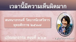 ท่านอาจารย์ ก็ไม่เห็นผิดอะไร ในการที่เคยได้ยินได้ฟังเรื่องความเห็นผิด แล้วยังไม่แน่ใจว่า เขาจะถูกหรือจะผิดบ้างไหม ที่เขาคิดอย่างนั้น หรือทำอย่างนั้น เพราะว่าเวลานี้มีความเห็นผิดมาก เท่าที่เคยได้ฟังเร็วๆ นี้ ก็มีคนมาชักชวนบอกว่า เคยได้ยินลัทธิศาสนาอันนี้ไหม เป็นลัทธิศาสนาซึ่งมาจากพระสูตรหนึ่งก่อนพระผู้มีพระภาคปรินิพพาน ๘ ปี ดิฉันก็ไม่เข้าใจว่าทำไมเขาจะต้องตื่นเต้น ก็ถามเหตุผลว่า แล้วพระสูตรอื่นๆ แล้วธรรมอื่นๆ ที่ทรงแสดง ๔๕ พรรษา ไม่มีความหมายอะไรเลยหรือ ทำไมถึงจะต้องมาตื่นเต้นกับพระสูตรซึ่งทรงแสดงก่อนปรินิพพาน ๘ พรรษา คำตอบก็ไม่มี