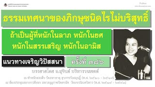 นี่คือความละเอียดของกิเลส ซึ่งถ้าเป็นผู้ที่หนักในลาภ หนักในยศ หนักในสรรเสริญ หนักในอามิส เมื่อท่านจะแสดงธรรม ขณะที่แสดง ก็ปรารถนาให้บุคคลเหล่านั้นฟังแล้วเลื่อมใส และแสดงอาการของผู้เลื่อมใสต่อท่านที่แสดงธรรม นี่เป็นเรื่องความละเอียดของจิตใจ