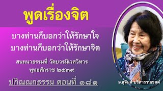 ผู้ฟัง ฟังท่านอาจารย์พูดบอกว่าให้รักษาจิต บางท่านก็บอกว่าให้รักษาใจ บางท่านก็บอกว่าให้รักษาจิต แต่ผมคิดว่าจิตกับใจ ถ้าเราศึกษาจะรู้ว่าต่างกันแน่นอน แล้วจิตเห็น จิตได้ยินนั้นก็เป็นจิตอีกประเภทหนึ่ง ที่ว่าจิต ๔ ชาตินั้น ผมคิดว่าคงจะเป็นใจ ใช่ไหม จิต กุศลหรืออกุศล วิบากหรือกิริยา คงจะไม่ใช่จิตที่เห็น ได้ยิน แต่ว่าจะต้องเป็นใจเท่านั้น ใช่ไหม ถึงจะเรียกว่าเป็นวิบาก กิริยา