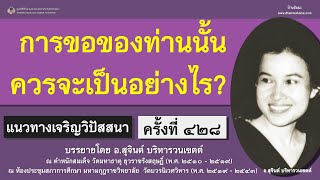 เป็นชีวิตประจำวันหรือเปล่า เรื่องของการขอ บางทีคนอื่นขอท่าน บางทีท่านก็มีธุระที่จะขอจากบุคคลอื่น เพราะฉะนั้น ก็ควรรู้จักการขอว่า การขอของท่านนั้นควรจะเป็นอย่างไร เพราะว่าการขอไม่ใช่จะสำเร็จทุกครั้ง บางครั้งก็ได้ บางครั้งก็ไม่ได้ เพราะฉะนั้น จะต้องวางใจให้รู้สภาพธรรมตามความเป็นจริงว่า อาจจะสำเร็จหรือไม่สำเร็จก็ได้