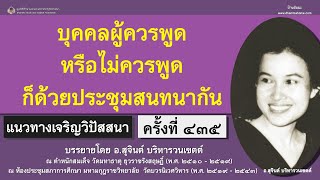 ดูกร ภิกษุทั้งหลาย จะพึงทราบบุคคลผู้ควรพูดหรือไม่ควรพูด ก็ด้วยประชุมสนทนากัน ดูกร ภิกษุทั้งหลาย ถ้าบุคคลเมื่อถูกถามปัญหา ไม่ดำรงอยู่ในฐานะและ อฐานะ ไม่ดำรงอยู่ในปริกัป (คือ ความตรึก ความดำริ ความพิจารณาเนื้อความและเหตุผล) ไม่ดำรงอยู่ในวาทะที่ควรรู้ทั่วถึง ไม่ดำรงอยู่ในปฏิปทา เมื่อเป็นเช่นนี้ บุคคลนี้ชื่อว่าเป็นผู้ไม่ควรพูด แต่ถ้าบุคคลเมื่อถูกถามปัญหา ดำรงอยู่ในฐานะและ อฐานะ ดำรงอยู่ในปริกัป ดำรงอยู่ในวาทะที่ควรรู้ทั่วถึง ดำรงอยู่ในปฏิปทา เมื่อเป็นเช่นนี้ บุคคลนี้ชื่อว่าเป็นผู้ควรพูด