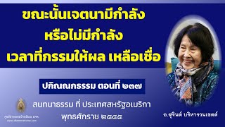 ท่านอาจารย์ ขณะนั้นเจตนามีกำลังหรือไม่มีกำลัง ประกอบด้วยกิเลสที่มีกำลังหรือไม่มีกำลัง เป็นเรื่องของเจตนา และเป็นเรื่องของกรรมนั้น เวลาที่กรรมให้ผล เหลือเชื่อ คือไม่มีใครสามารถที่จะรู้ได้ในรูปแบบไหน