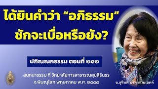 ผู้ที่เข้าใจธรรมก็จะรู้ว่า ธรรมนั้นเป็นปรมัตถธรรม แล้วปรมัตถธรรม หรืออภิธรรมเป็นคัมภีร์ที่ยิ่งใหญ่ เพราะเหตุว่าเป็นการกล่าวถึงเรื่องสภาพธรรมทั้งหมด โดยละเอียด สิ่งที่มีจริงๆ ทรงแสดงโดยละเอียด แล้วจะให้ตัดอะไรทิ้ง ผู้ที่บอกว่ารู้จักธรรม แต่ไม่รู้จักปรมัตถธรรม หรือไม่รู้จักอภิธรรม พูดไม่ถูก เพราะรู้จักธรรมก็เข้าใจถูกต้องว่า ธรรมเป็นธรรม เป็นปรมัตถธรรม เป็นอภิธรรม ไม่มีใครสามารถสร้างธรรมได้เลย ธรรมทุกอย่างในขณะนี้ที่เกิด พระผู้มีพระภาคทรงตรัสรู้เหตุปัจจัยที่ทำให้สภาพธรรมในขณะนี้เกิดขึ้นเป็นไปทุกๆ ขณะ แล้วจะไปตัดอะไรออก วันนี้จะตัดอะไร ตัดเห็น หรือตัดได้ยิน หรือตัดได้กลิ่น หรือตัดลิ้มรส หรือตัดการกระทบสัมผัส หรือว่าตัดการคิดนึก ไม่มีใครสามารถจะตัดหรือทำอะไรกับธรรมได้เลย