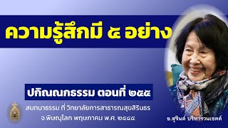 ท่านอาจารย์ ความรู้สึกมี ๕ อย่าง คือ รู้สึก เฉยๆ อย่างหนึ่ง รู้สึกโสมนัส ดีใจเป็นสุข ทางใจ อย่างหนึ่ง และโทมนัส ขุ่นเคืองไม่พอใจอย่างหนึ่ง สุขกาย ที่กายเป็นความรู้สึกที่เป็นสุขสบาย หรือว่าทุกข์กายอีกอย่างหนึ่ง รวมความแยกเป็นทางใจ และทางกาย ถ้ารวมกันก็เป็น ๓ คือ สุข ๑ ทุกข์ ๑ อุเบกขาหรืออทุกขมสุข ๑ ถ้าแยกทางกายเป็นสุข ทุกข์ ทางใจเป็นโทมนัส โสมนัส เพราะว่าบางคนอย่างพระอรหันต์ ท่านก็มีทุกข์กายได้ ป่วยไข้ได้เจ็บได้ พระอรหันตสัมมาสัมพุทธเจ้าก็ทรงประชวร แต่ไม่ได้เป็นโทมนัสเลย แต่ว่าสำหรับผู้ที่ยังมีกิเลส ยังไม่ทันจะป่วยเจ็บก็อาจจะกังวลเกิดแล้ว ใช่ไหม ก็เป็นไปได้ เพราะฉะนั้น ความรู้สึกต้องเกิดกับจิตทุกขณะ ความรู้สึกเป็นสภาพธรรมที่มีจริง เป็นนามธรรม ไม่มีใครมองเห็น ไม่มีมือ ไม่มีเท้า ไม่มีแขน ไม่มีขา แต่เป็นธรรมชาติที่รู้สึก ทุกครั้งที่จิตรู้อารมณ์อะไร เวทนาเจตสิกจะเป็นสภาพที่รู้สึกในอารมณ์นั้น เพราะฉะนั้น จิตไม่รู้สึก จิตไม่ใช่เวทนาเจตสิก จิตเป็นสภาพที่เป็นใหญ่ในการรู้ แต่ขณะเดียวกันกับที่จิตรู้ เจตสิกอื่นๆ ที่เกิดร่วมกับจิตนั้นก็รู้อารมณ์เดียวกับจิตนั้น แต่มีหน้าที่ต่างๆ กันไปแต่ละอย่างเป็น ๕๒ ชนิด แต่ถ้ากล่าวถึงสัพพจิจตสาธารณเจตสิก คือว่าจะขาดเจตสิกหนึ่งเจตสิกใดใน ๗ เจตสิกไม่ได้ คือต้องมีเวทนาเจตสิกเกิดร่วมด้วย จะรู้หรือไม่รู้ก็ตาม ทุกครั้งที่จิตเกิด ผัสสะกระทบอารมณ์ มีอารมณ์ปรากฏ ที่จะไม่ให้รู้สึกเลย เป็นไปไม่ได้ เพียงแต่เราไม่สามารถจะบอกได้บางครั้งว่าเป็นความรู้สึกอะไร เพราะว่าส่วนใหญ่วันหนึ่งๆ ทุกข์ทางกายบ่อยไหม บ่อยหรือไม่บ่อย ขณะนี้เป็นทุกข์หรือเปล่า ทุกข์หรือ เจ็บปวดเมื่อยกายตรงไหน เย็นไปหรือ ก็เป็นเรื่องที่แต่ละคนจะทราบดีว่าความรู้สึกอย่างนั้นต้องมี ทางกายจะเป็นสุขหรือทุกข์ แต่ทางใจไม่เกี่ยวกับทางกายเลย จะเป็นความโสมนัสหรือโทมนัส แต่ความรู้สึกที่เป็นประจำ คือ อทุกขมสุข อุเบกขา เฉยๆ เรื่อยๆ มองหาก็ไม่เห็นความรู้สึกอยู่ที่ไหน เพราะเฉย ใช่ไหม แต่ความจริงลักษณะที่รู้เฉย เป็นสภาพของเวทนาเจตสิก นกมีเวทนาเจตสิกไหม ธรรม ปรมัตถธรรม ไม่มีชื่อ เป็นสภาพธรรม ถ้าพูดถึงจิตเห็น เห็นที่ไหนก็ต้องมีเจตสิกเกิด ๗ ดวง ใครเห็น ไม่เอารูปร่างเข้ามาเกี่ยว ไม่เอาภพภูมิเข้ามาเกี่ยว พรหมเห็นก็ต้องมีเจตสิกเกิดร่วมด้วย ๗ ดวง ในขณะที่จิตเห็นเกิด ไม่มากกว่านั้นเลย เพราะนี่เป็นสภาพธรรม เป็นปรมัตถธรรม เป็นอภิธรรม เพราะฉะนั้น นก สมมติว่านก นกเห็น มีเวทนาเจตสิกไหม ใครไม่มีเวทนาเจต